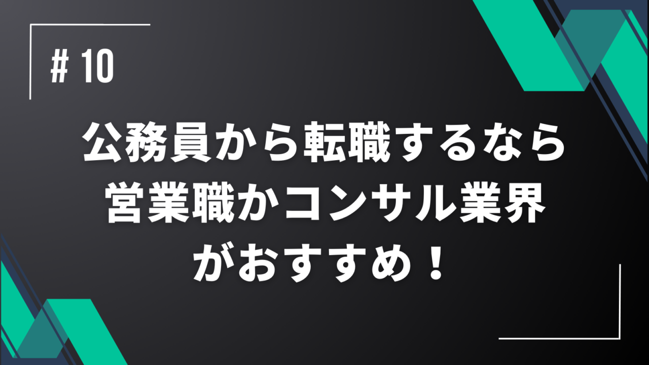 公務員から転職する方は、なんとなくのイメージで「営業とかコンサルはちょっと…」と敬遠してしまう人が多いのですが、これは非常にもったいないです。
